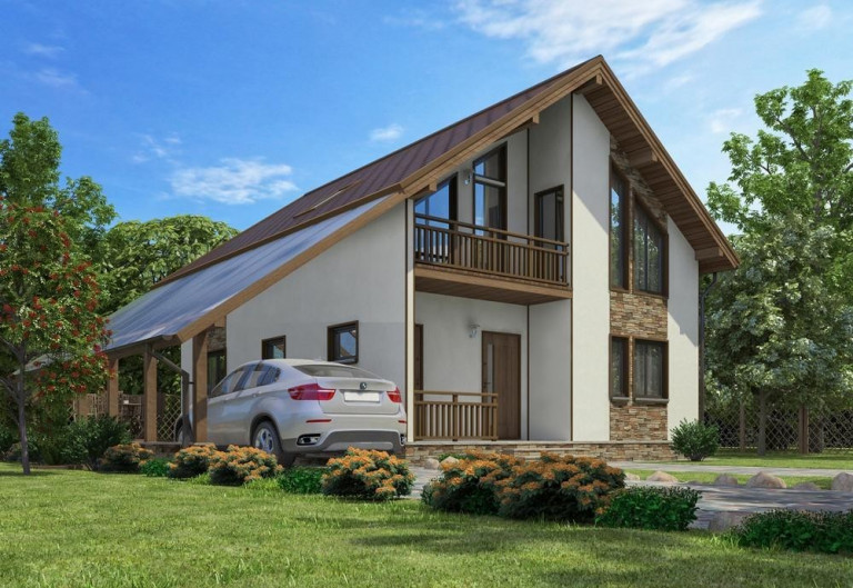 Амстердам – это проект готового дома из SIP-панелей, чья архитектура многое взяла как от домиков приморских голландских деревенек, так и от классических фахверковых построек. Это просторное жилище с террасой и балконом, двумя отдельными входами и удачным зонированием. Значительная часть первого этажа представляет собой просторную гостевую зону – это кухня-гостиная с камином, которая, за счет больших окон, визуально составляет единое целое с террасой.