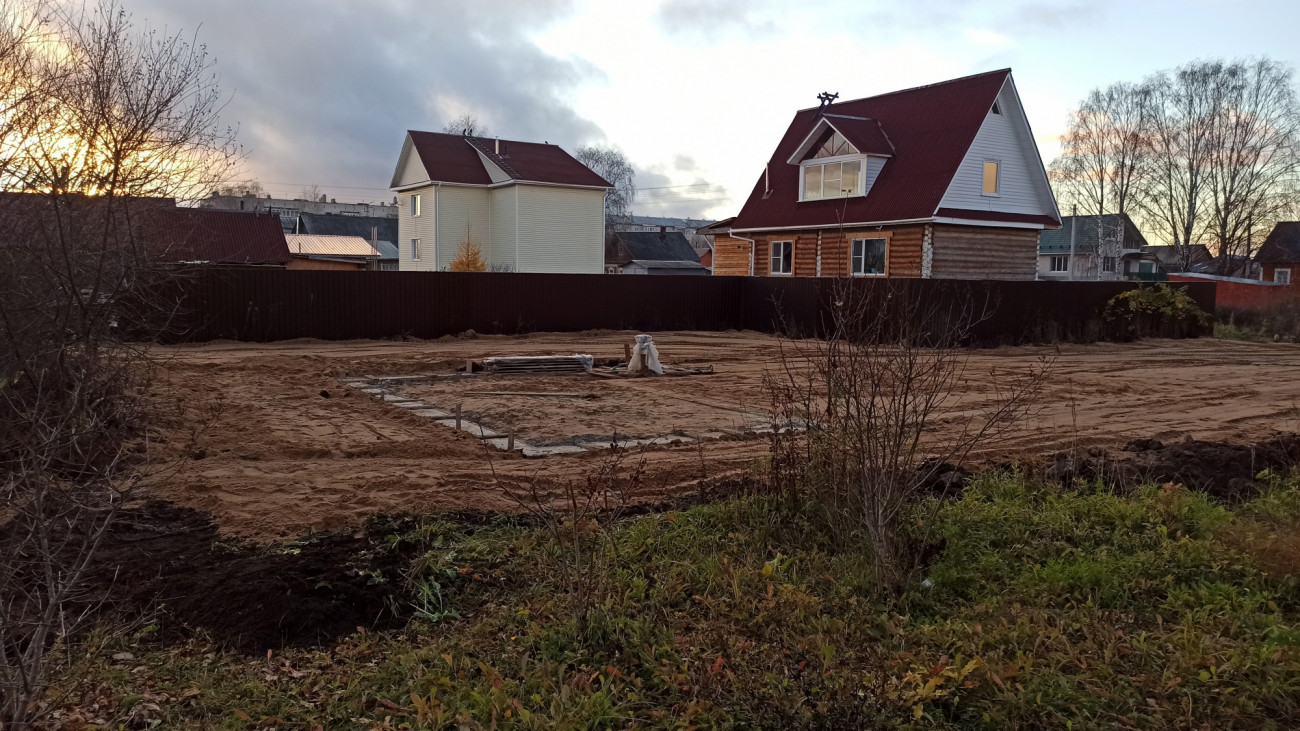 Продаётся готовый участок на ул. Водников, подготовленный под строительство (поднят, отсыпан грунтом и песком) с фундаментом и разрешением на строительство, всё рядом: магазины, остановки, садики и школы.